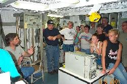 Dave gives an impromptu lecture about Radio Central to a tour group of