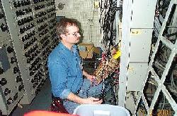 Bob Jones traces a cable for an antenna for the R-390 receiver in FACCON